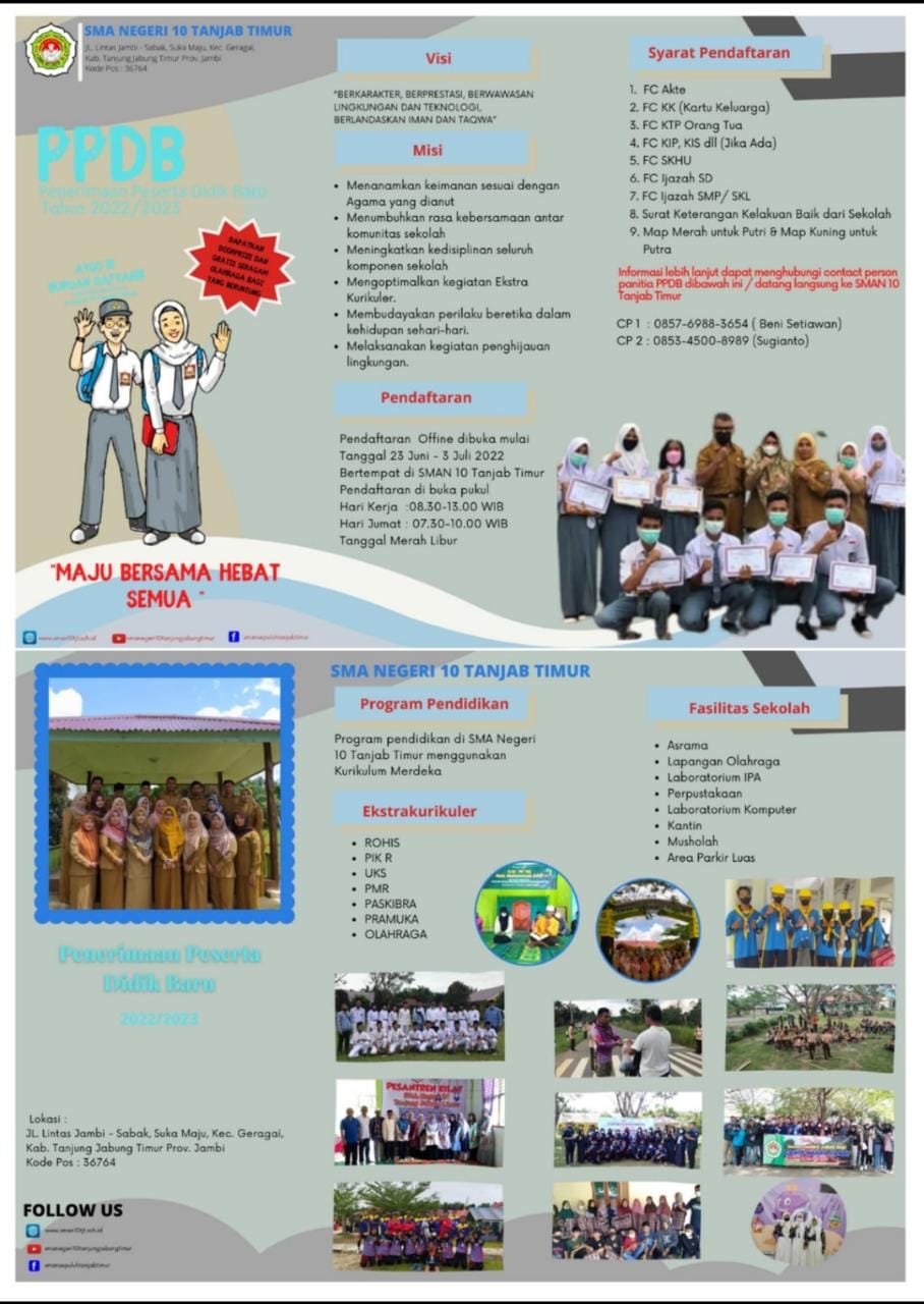 PENERIMAAN PESERTA DIDIK BARU SMA N 10 TANJUNG JABUNG TIMUR TP. 2022-2023