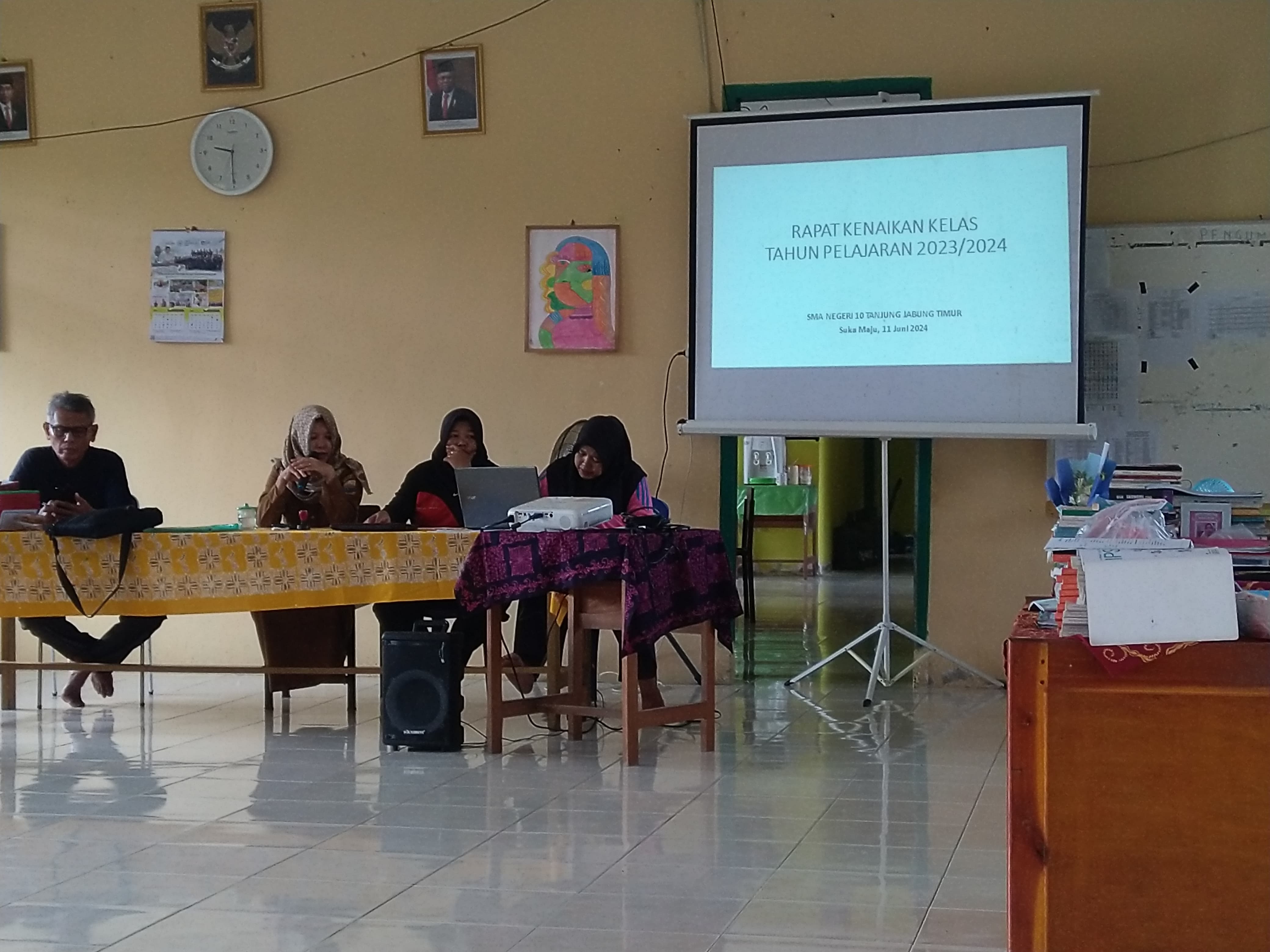 Rapat kenaikan kelas ini merupakan kegiatan rutin yang dilaksanakan setiap akhir tahun pelajaran, dengan tujuan untuk mengevaluasi perkembangan siswa-siswa selama satu tahun terakhir dan menentukan kelas yang akan mereka tempati pada tahun ajaran berikutnya. Namun, rapat kali ini memiliki arti khusus karena dilakukan dengan fokus pada peningkatan kualitas pendidikan di SMA N 10 Tanjung Jabung Timur.
